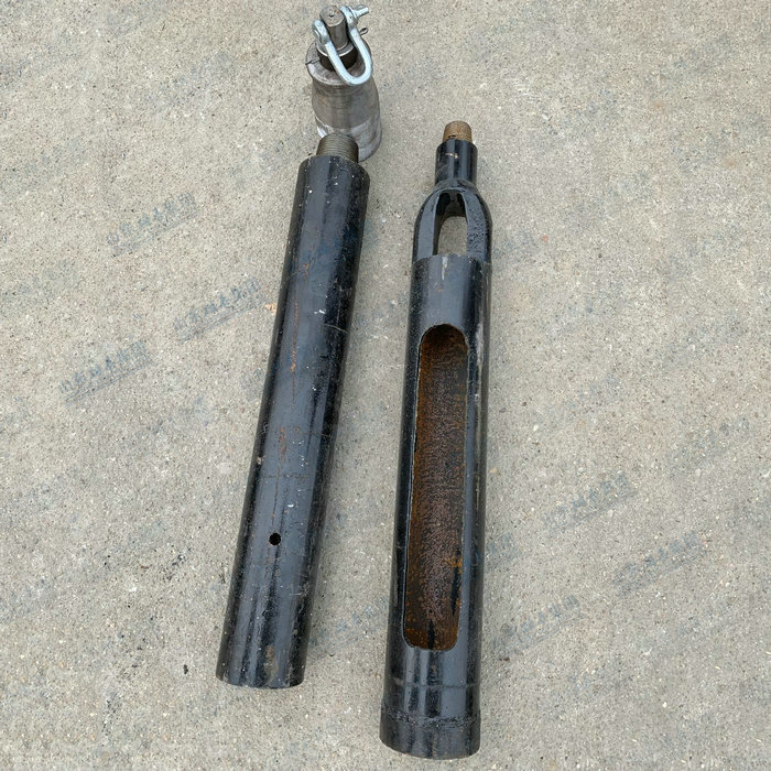 用提砂筒撈取砂卵石等的工具有提引接頭、加重桿、活接頭、提砂筒。在砂層和卵石層鉆進(jìn)時(shí)必須下套管,以保護(hù)孔壁防止塌孔。一般用成套自由鉗和鏈條鉗人力往復(fù)推轉(zhuǎn)隨沖擊進(jìn)尺而往下伸進(jìn)。